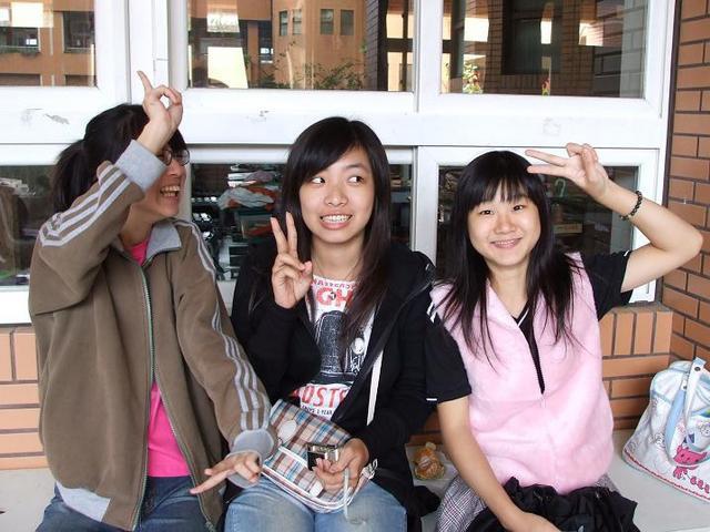 「呃... 我們不是耶 只是坐在這裡休息而已阿 搞不好還是你們學姊勒」