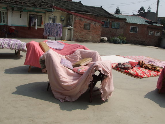 所有的棉被草蓆枕頭都拿到院子曬太陽