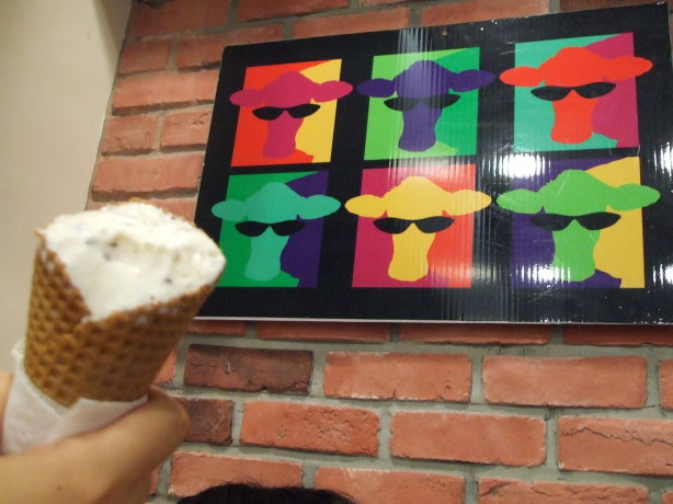 雅晴去吃了COW's那加冰淇淋店的薄荷冰淇淋,我也嚐了一口感覺不錯吃,