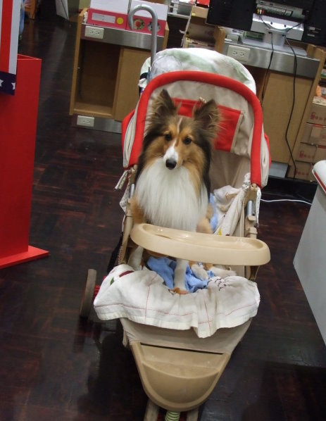 再那邊還看到一支長得超"正"的狗被放在嬰兒車裡,