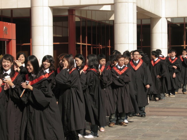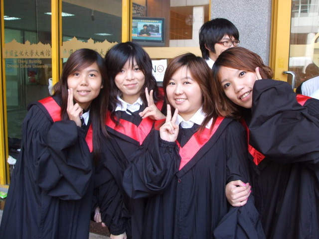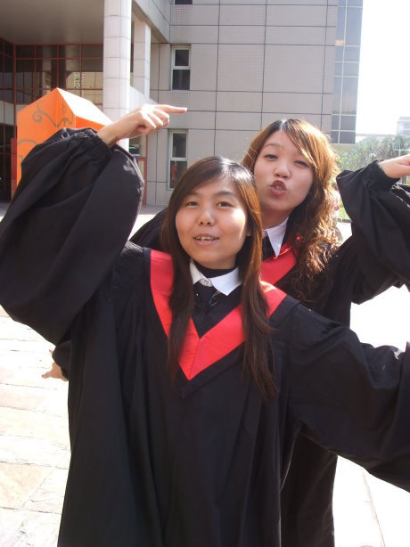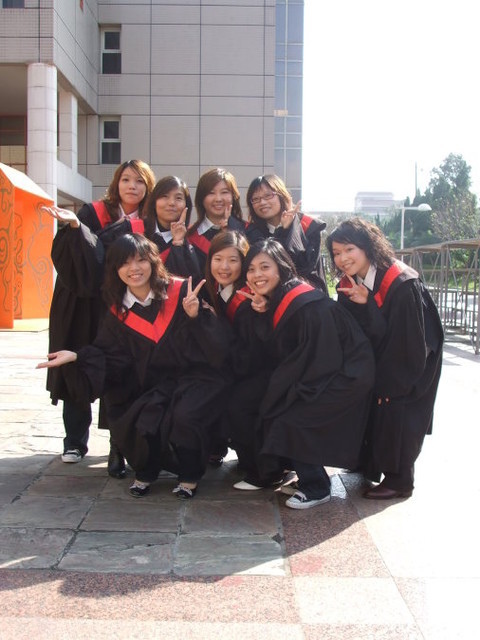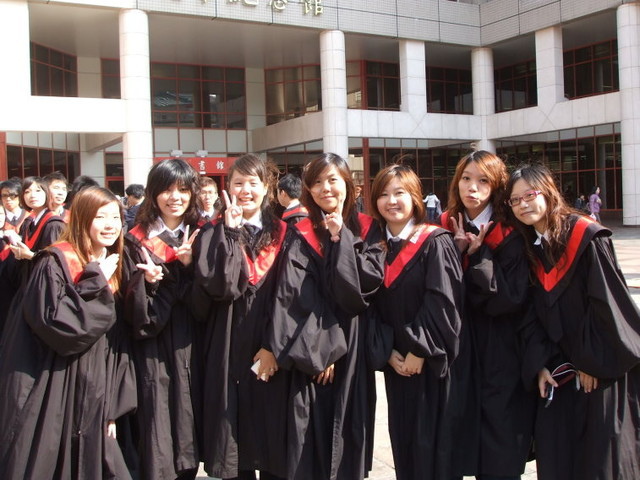我們文學院的披肩的那條線是紅色的,我覺得搭這顏色不錯~哈哈哈哈!
