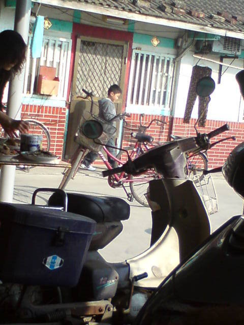我帶著兩個姪女從萬興村騎歐都邁到水林比較市區的那兒去買早餐,