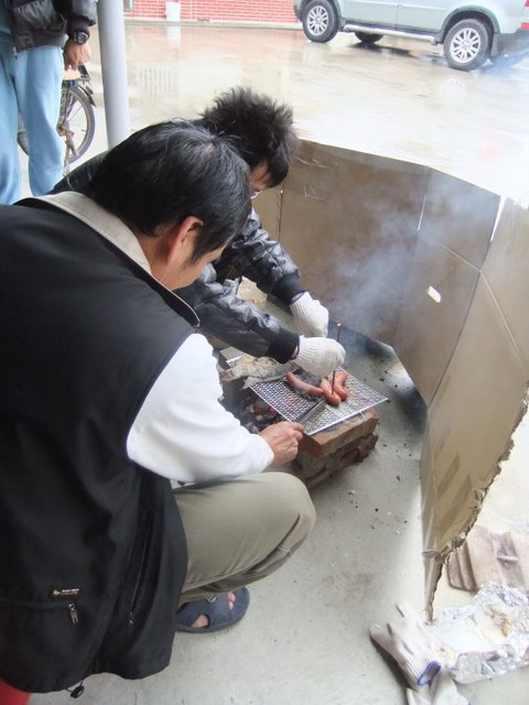 大人們也買了幾條吳郭魚和虱目魚還有蛤仔跟香腸。。。雨天烤肉囉~