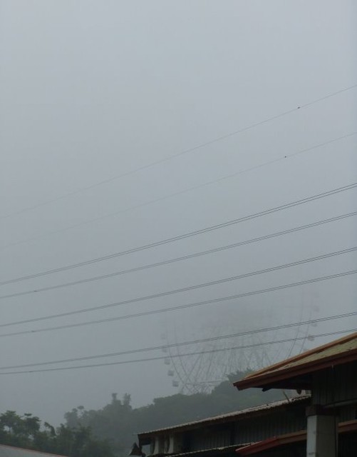 你看看~整個劍湖山摩天輪都被籠罩在厚厚的霧裡了.....